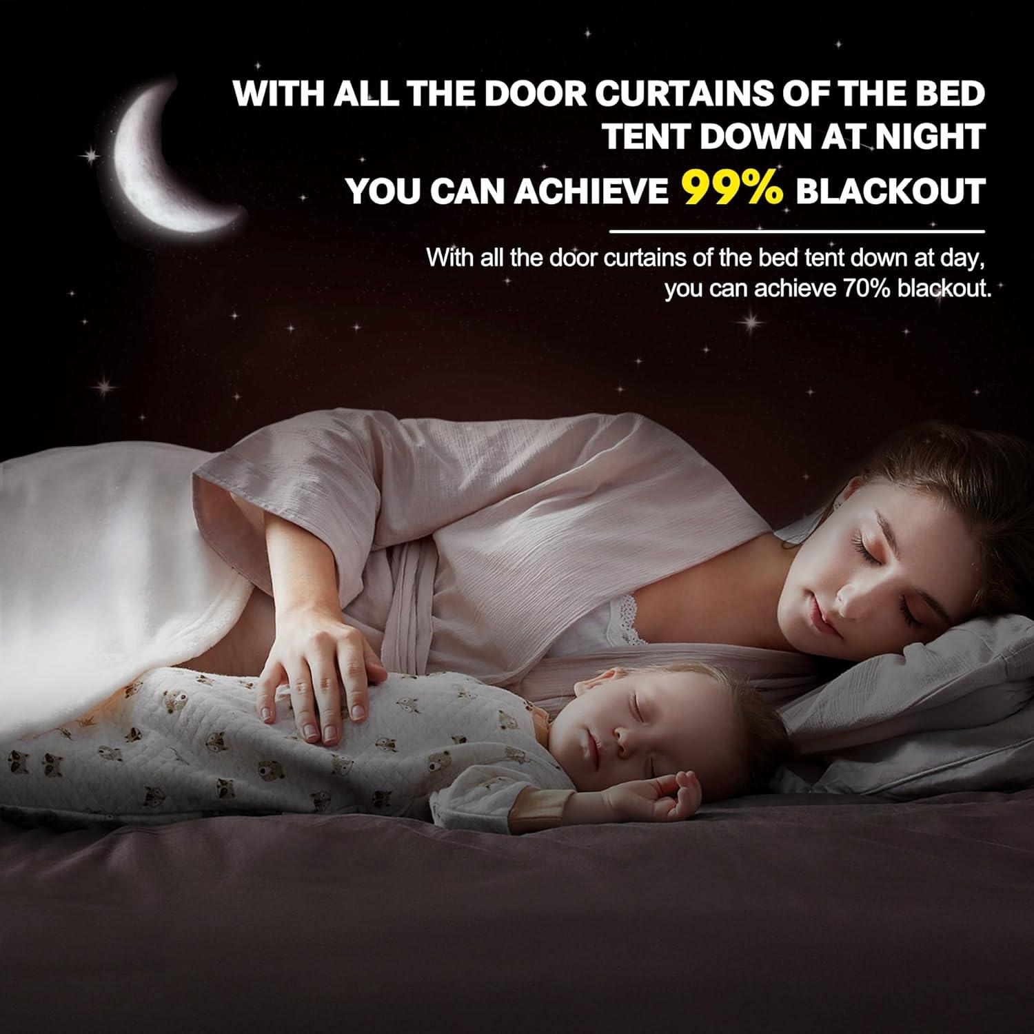 Bed Canopy Portable Blackout Bed Tent Privacy Tent for Adult Indoor Sleeping with 3 Doors, Storage Bag(Khaki)