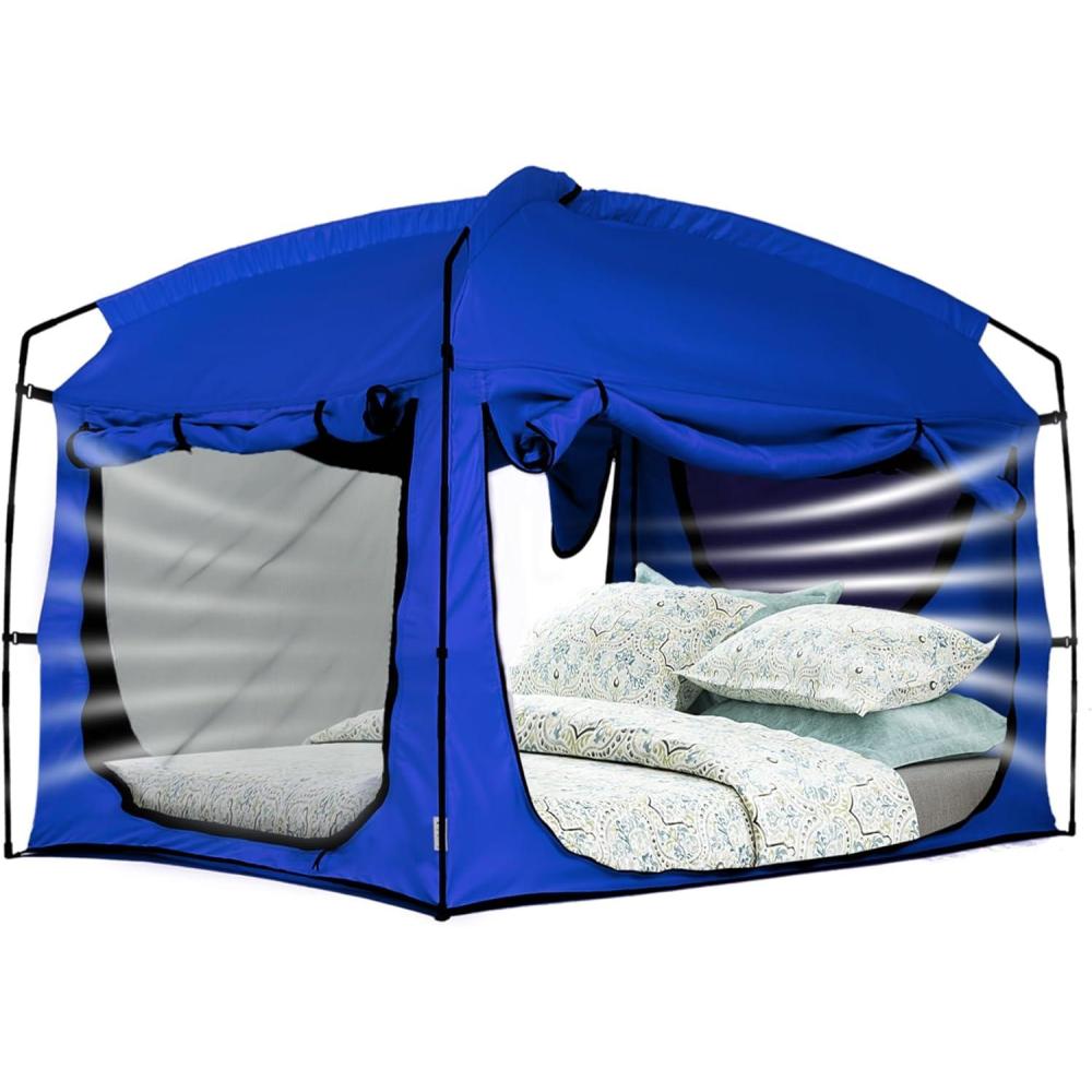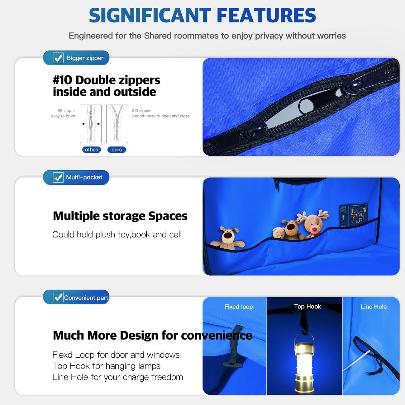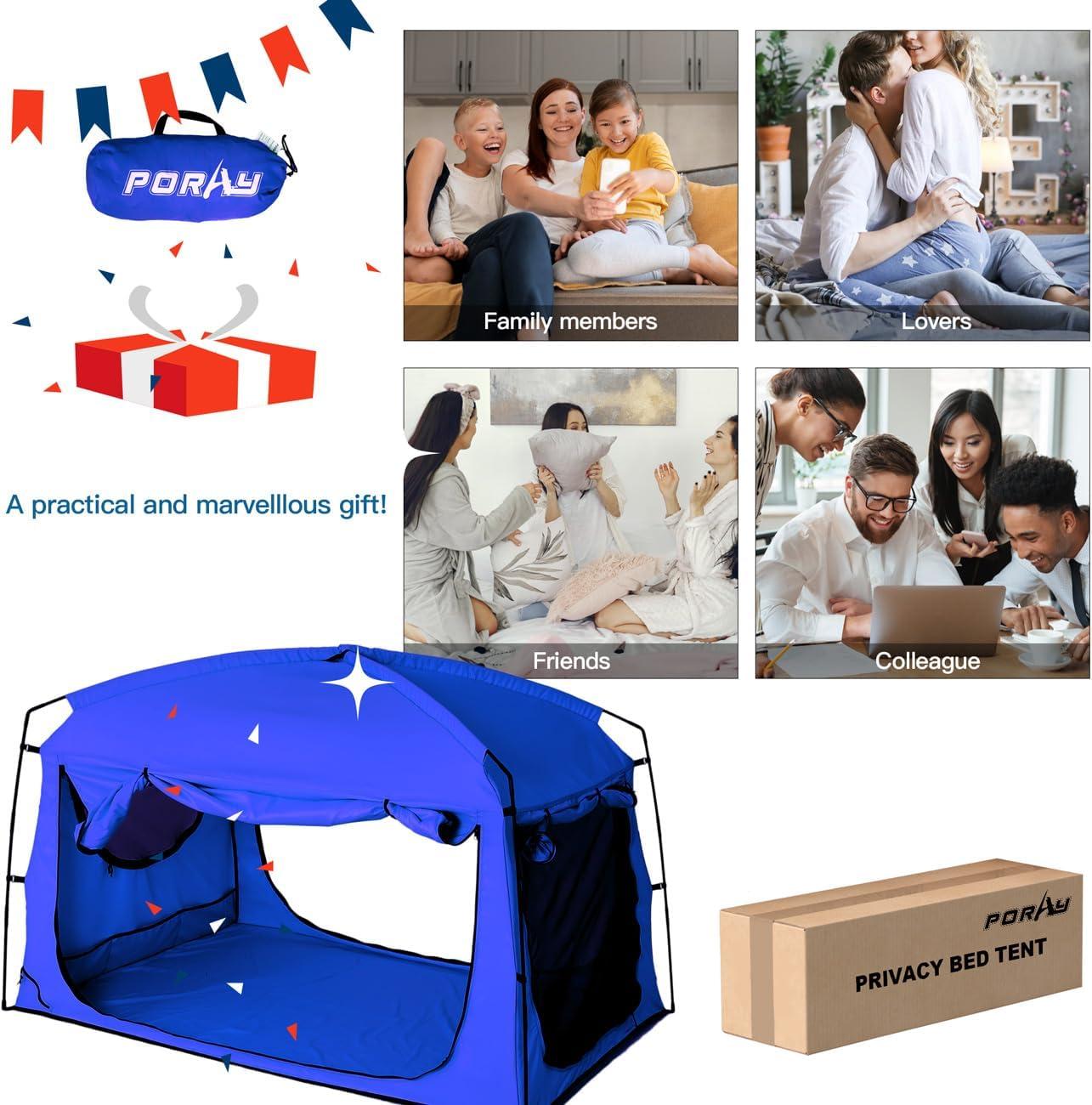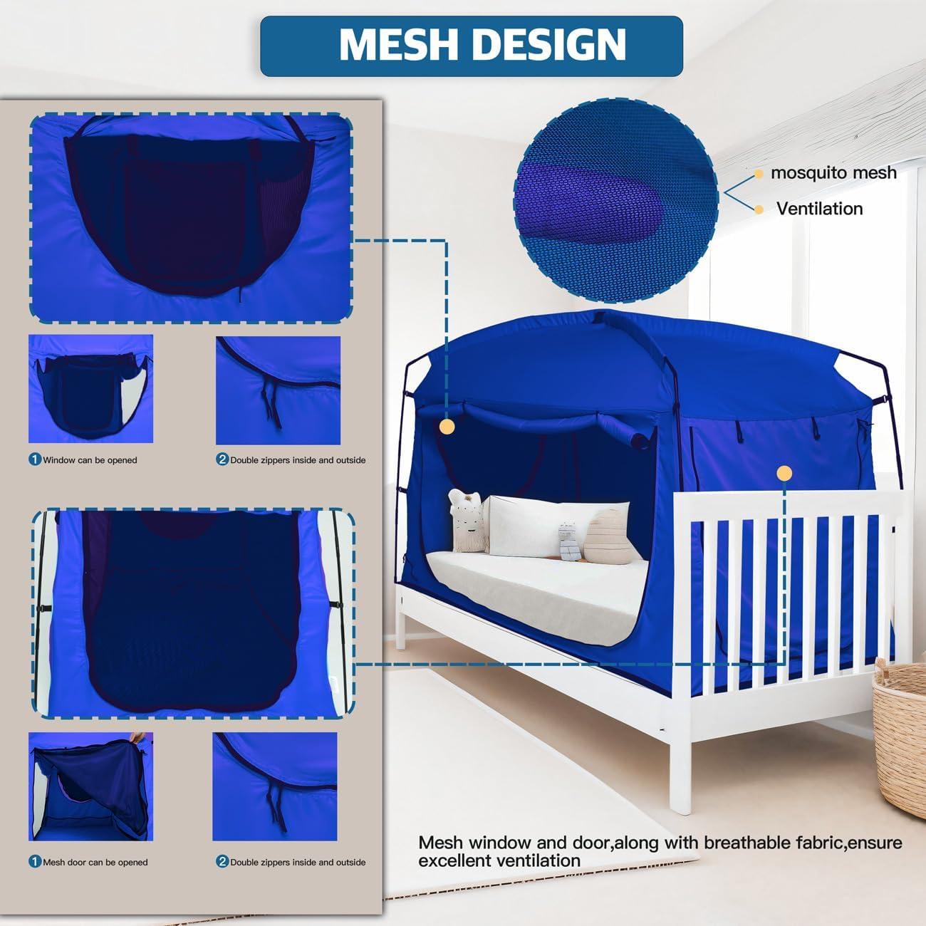 Bed Tent,Portable Privacy Sleeping Bed Canopy,Blackout 90% Drapes for Kids and Adult,Indoor Space Tent with Breathable Large Mesh Windows(Blue)