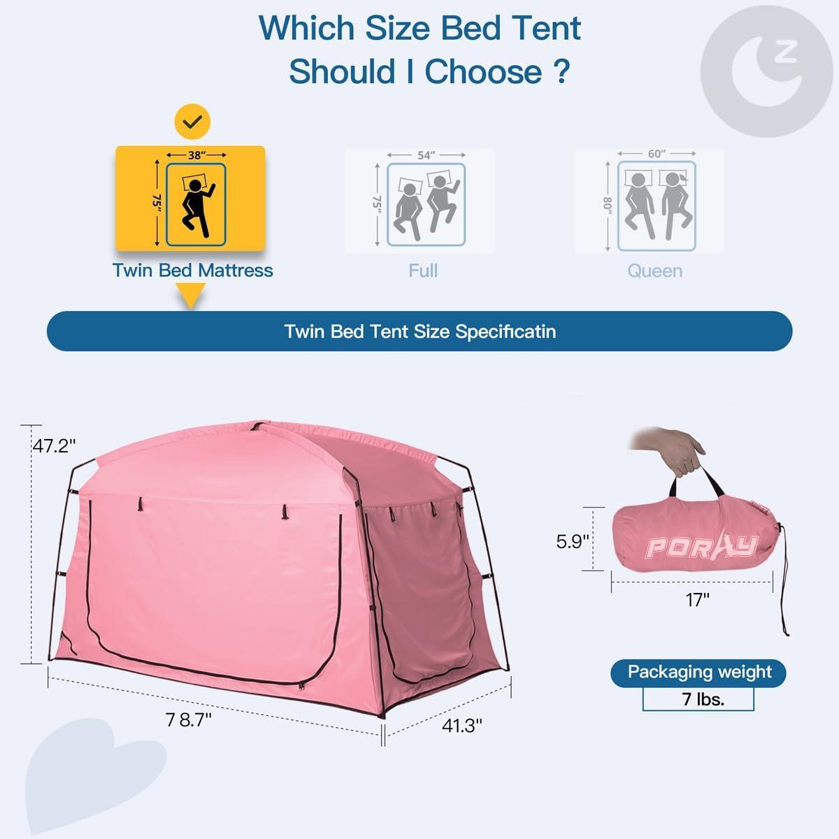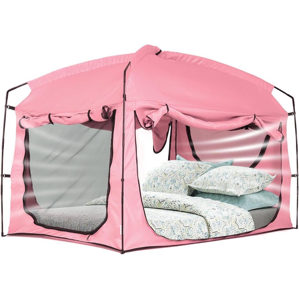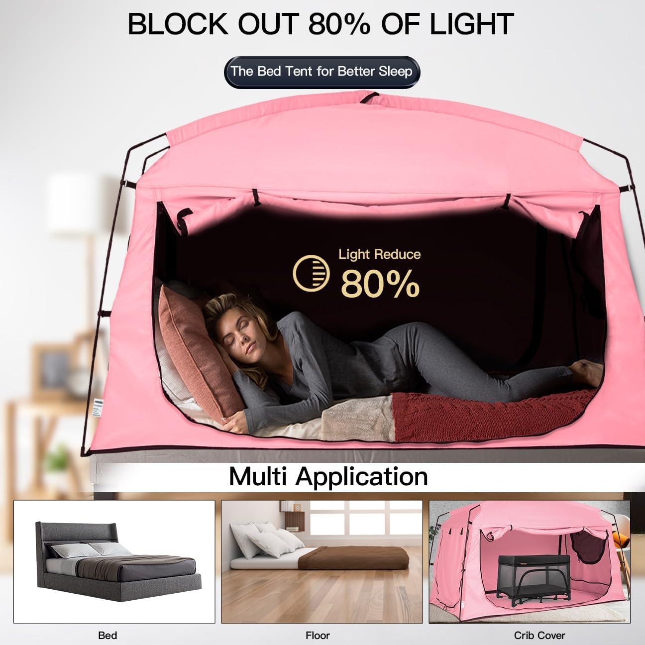 Bed Tent,Portable Privacy Sleeping Bed Canopy,Blackout 90% Drapes for Kids and Adult,Indoor Space Tent with Breathable Large Mesh Windows(Pink)