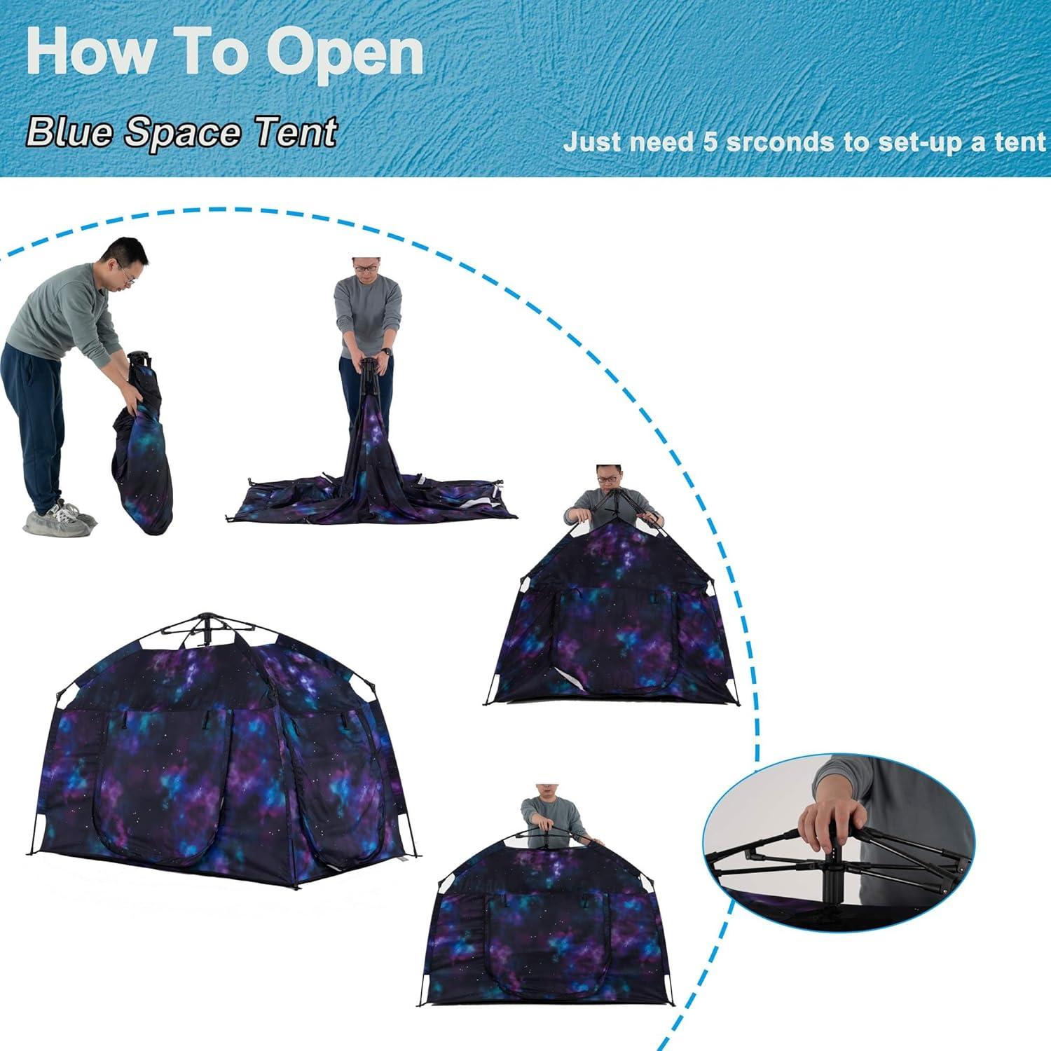 Kids Play Tent-Portable Playhouse Children House -Easy Set up Indoor Outdoor with Carry Bag for Kids-Light Strip Design for Night use -Space for Children and Parents-Birthday (Galaxy)(Blue)