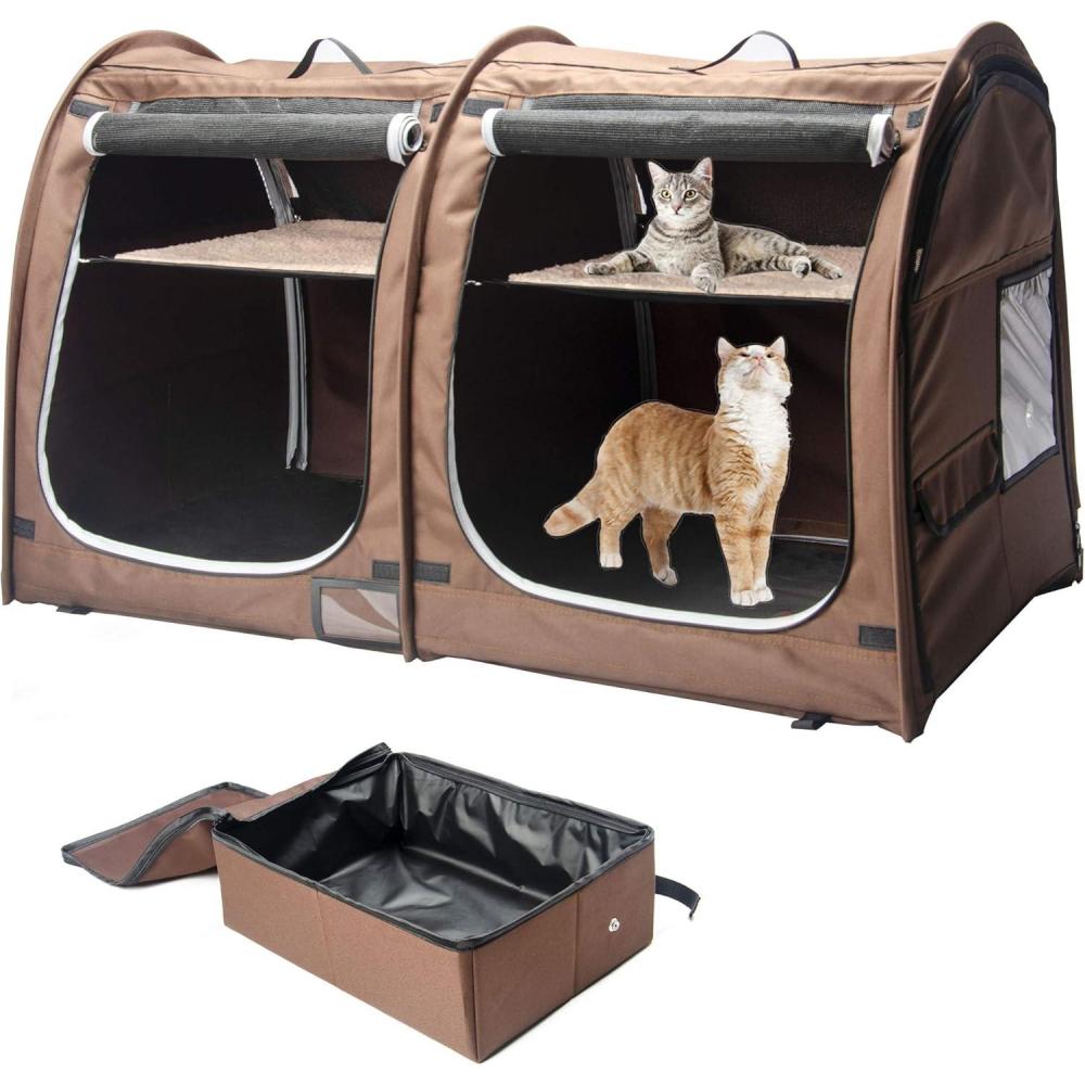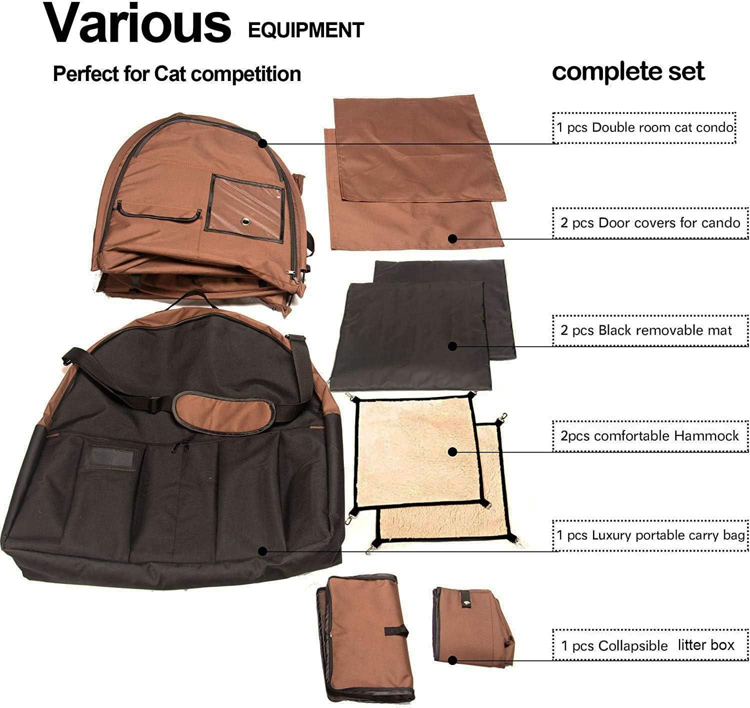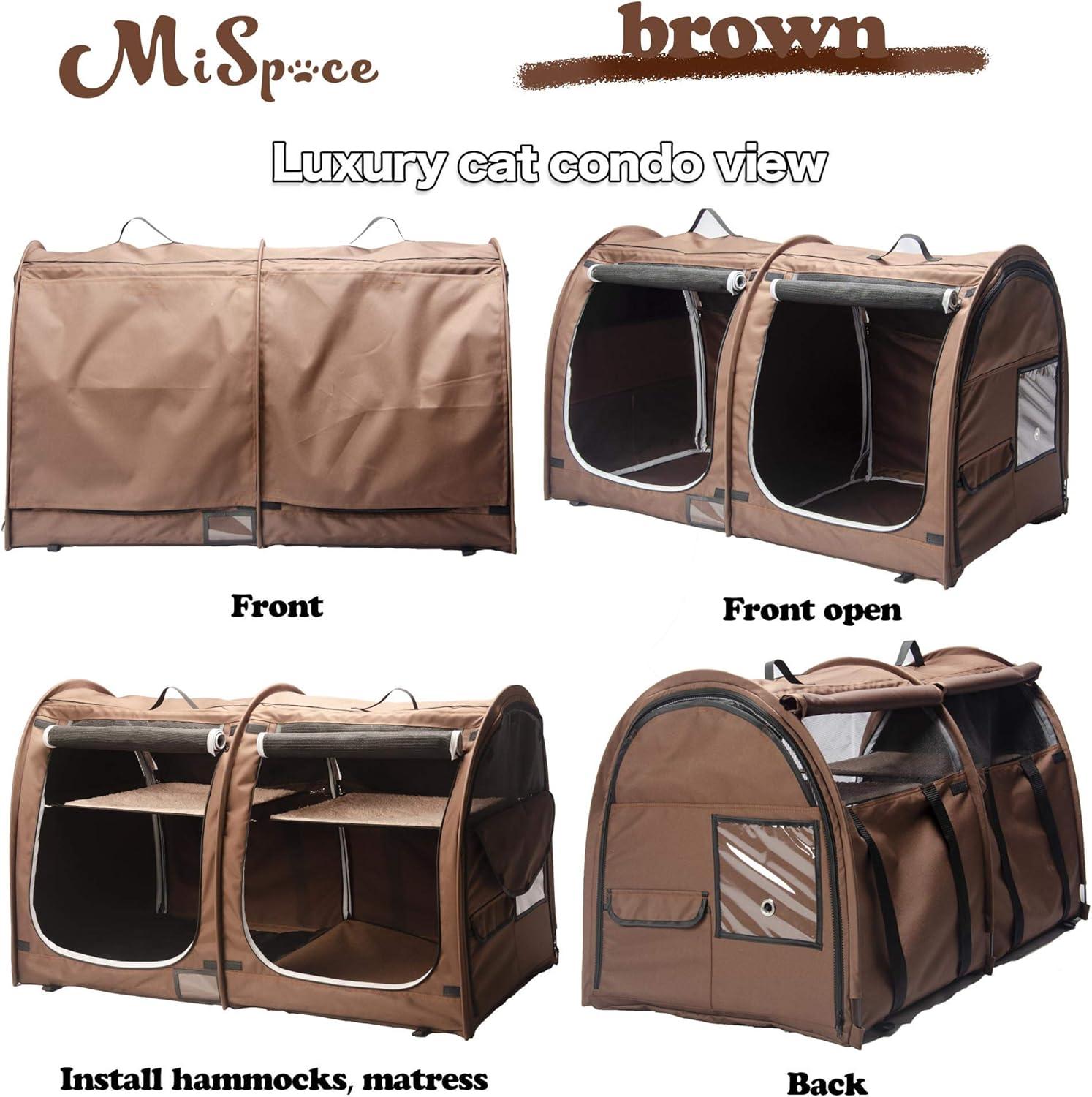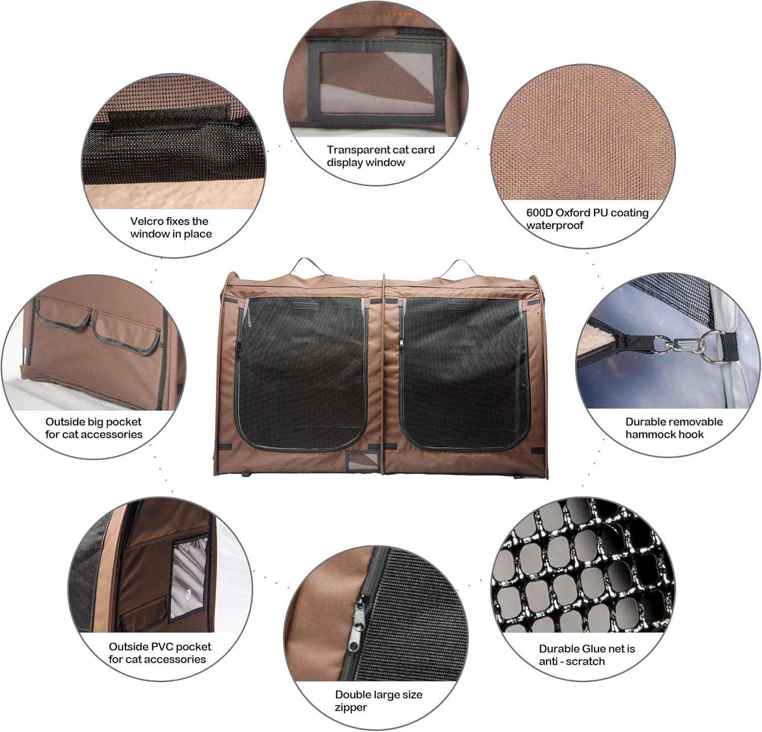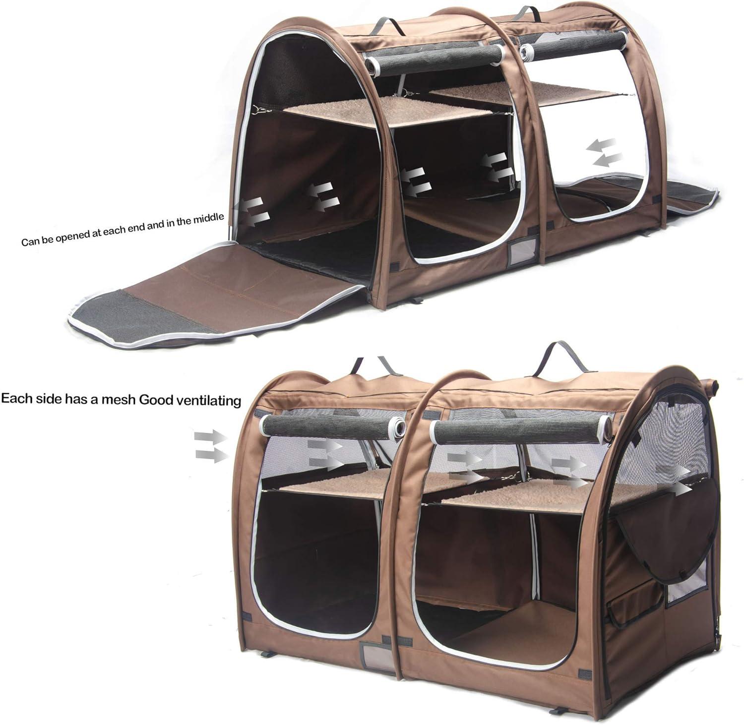 imageMispace Portable Twin Compartment Show House Cat Cage CondoComfy Puppy Home Dog Travel Crate with Carry Bag2 HammocksMats ampamp Collapsible Litter BoxBrown