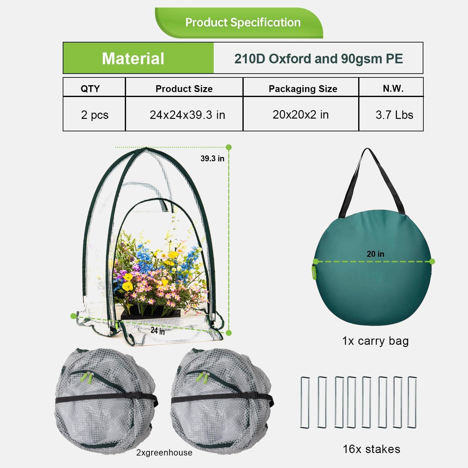 LARGE SPACE – The size of the greenhouse is 160*80*95CM/63″L x 31.5″W x 37.4″H, weighing 2.85kg, which is about 6.3pounds and folds down to a travel size of 19.3″L x 19″W x 3.9″H