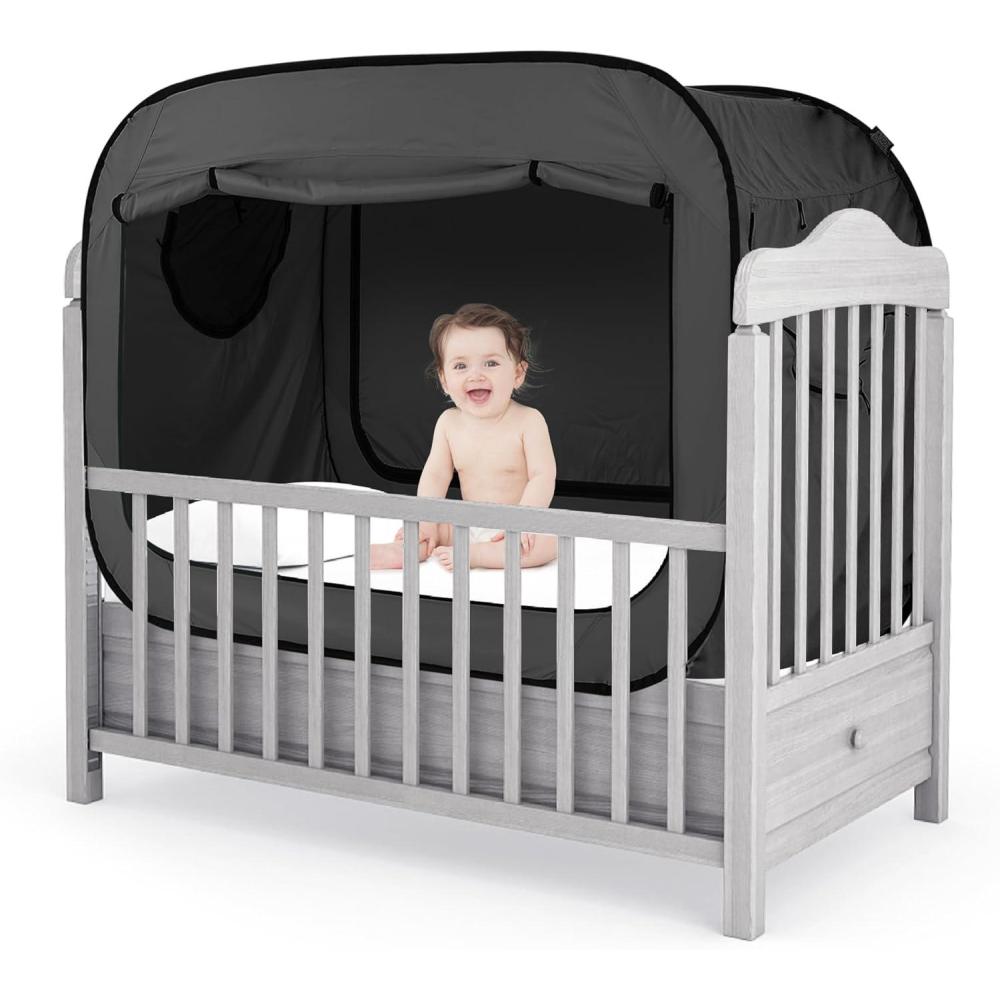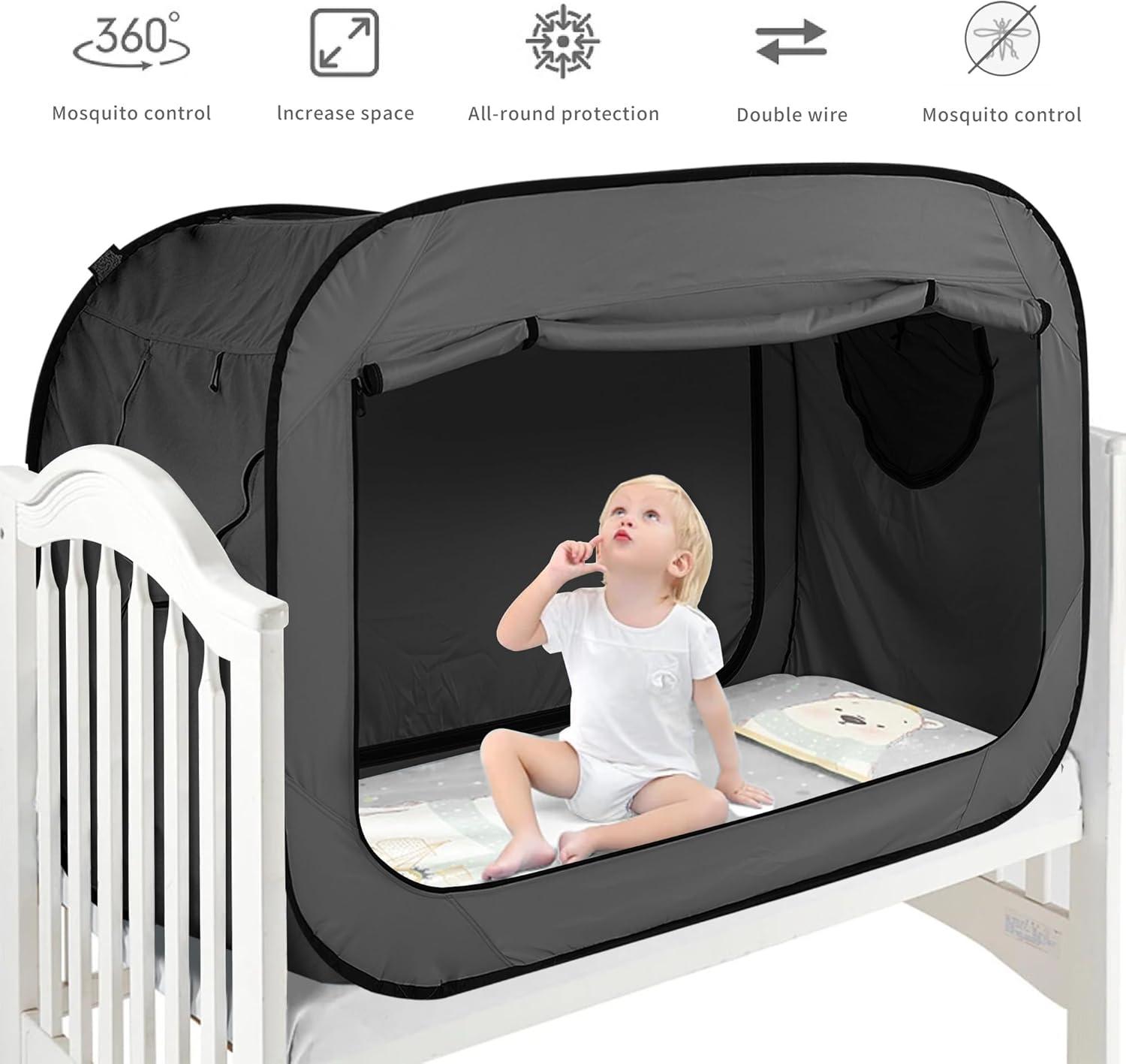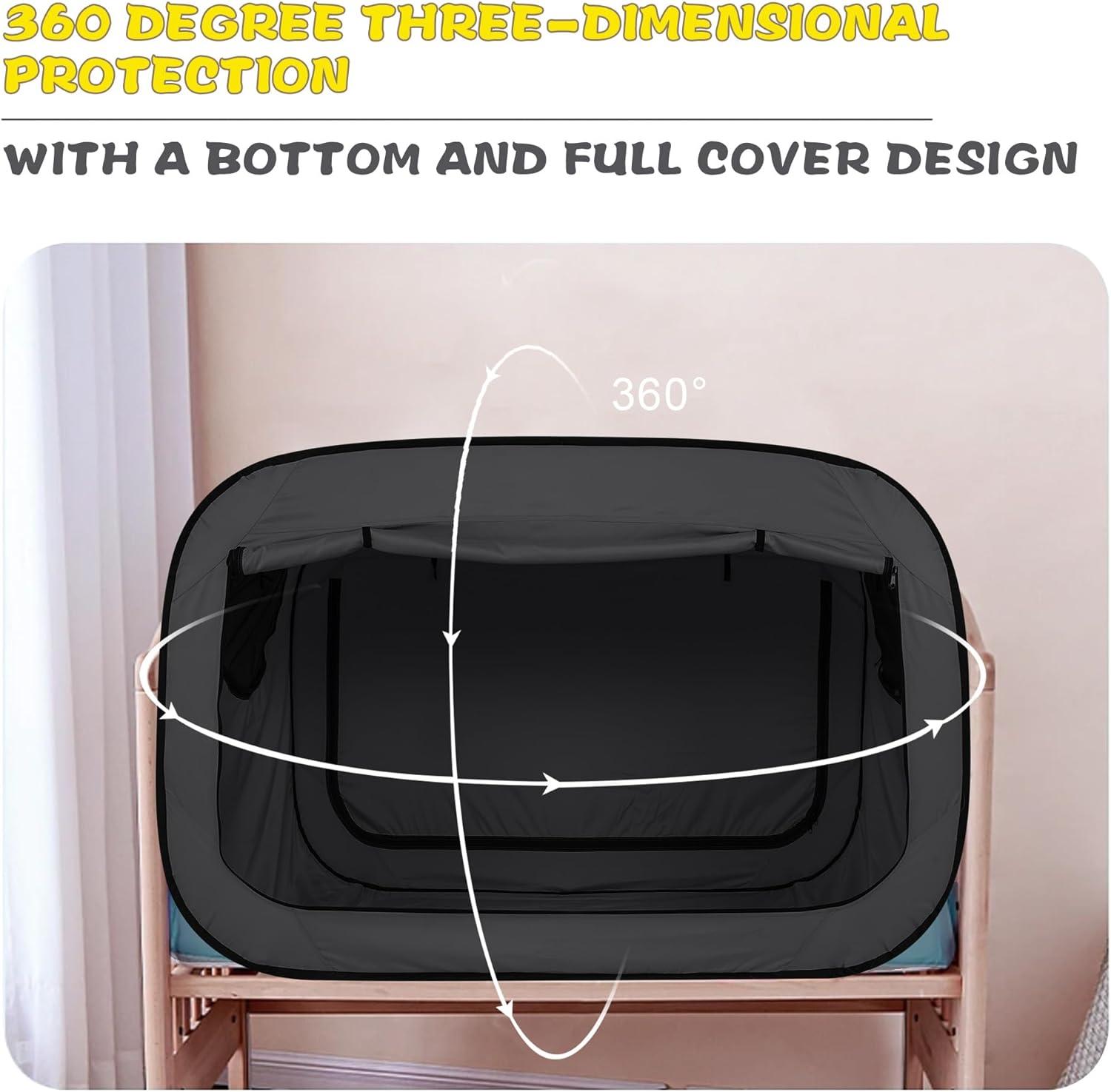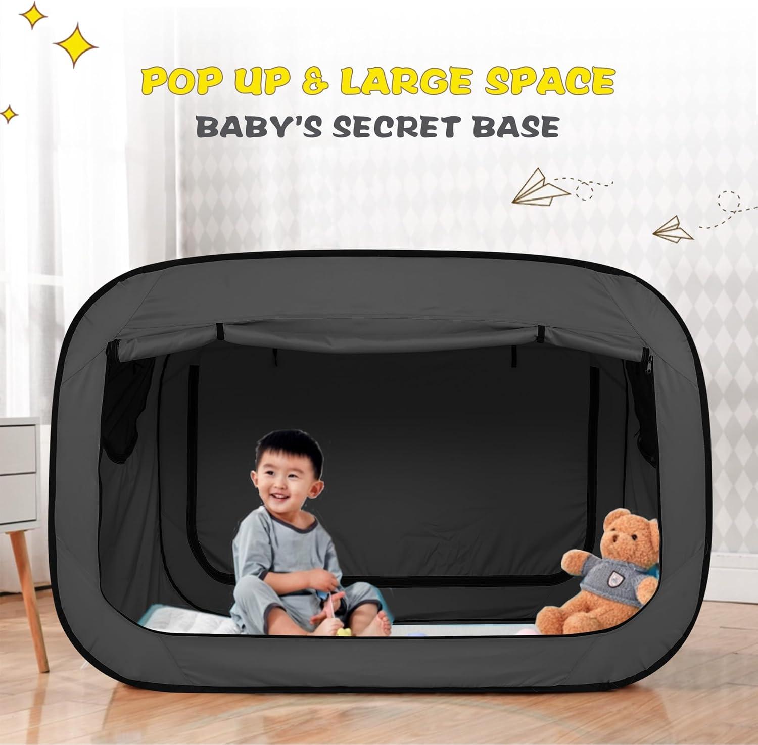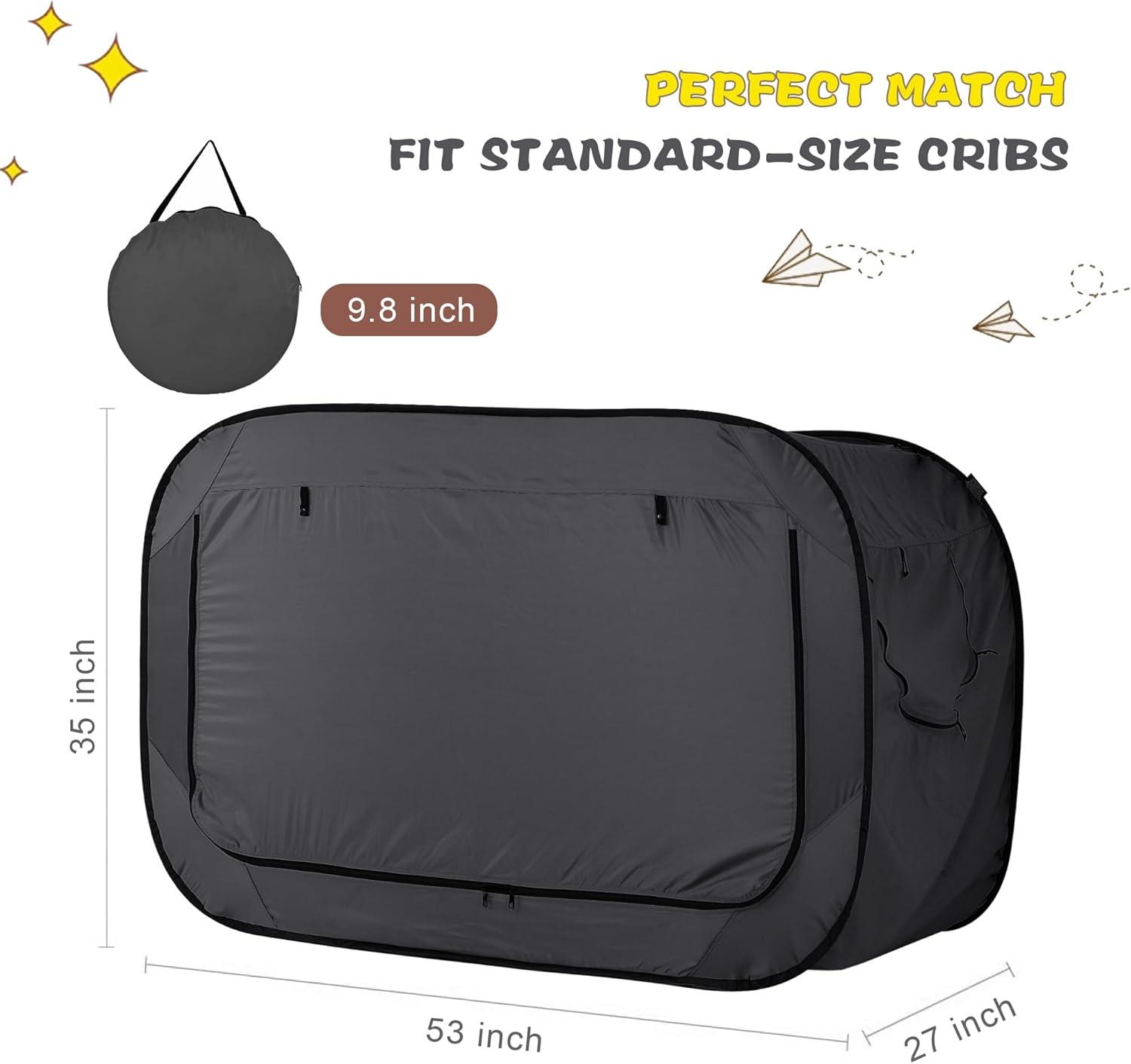 Poray Pop Up Baby Bed Tent Privacy Tent for Toddler Sleeping with 2 Zipper Doors,Breathable Mesh Windows and Portable Carry Bag(black)