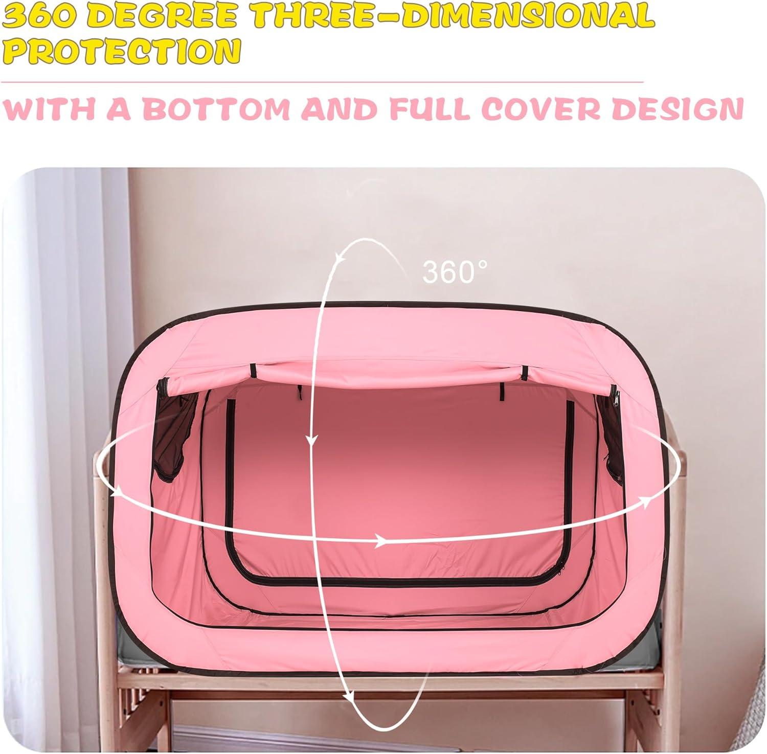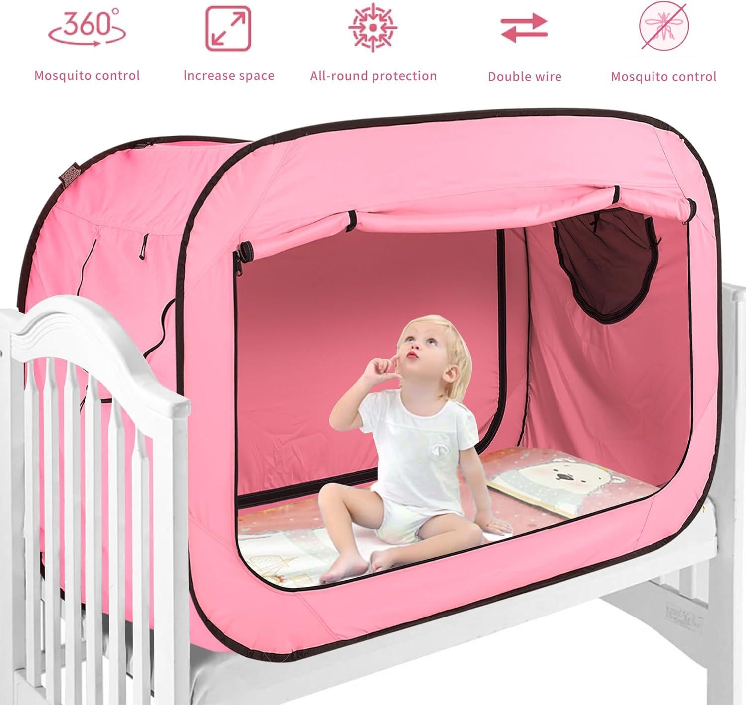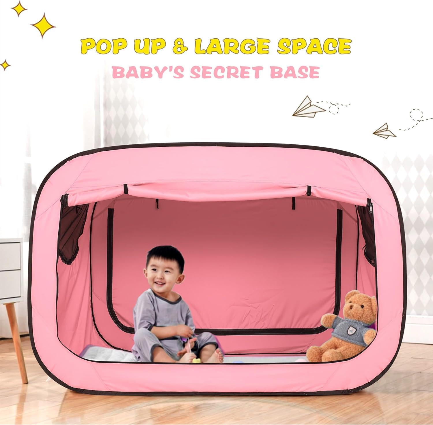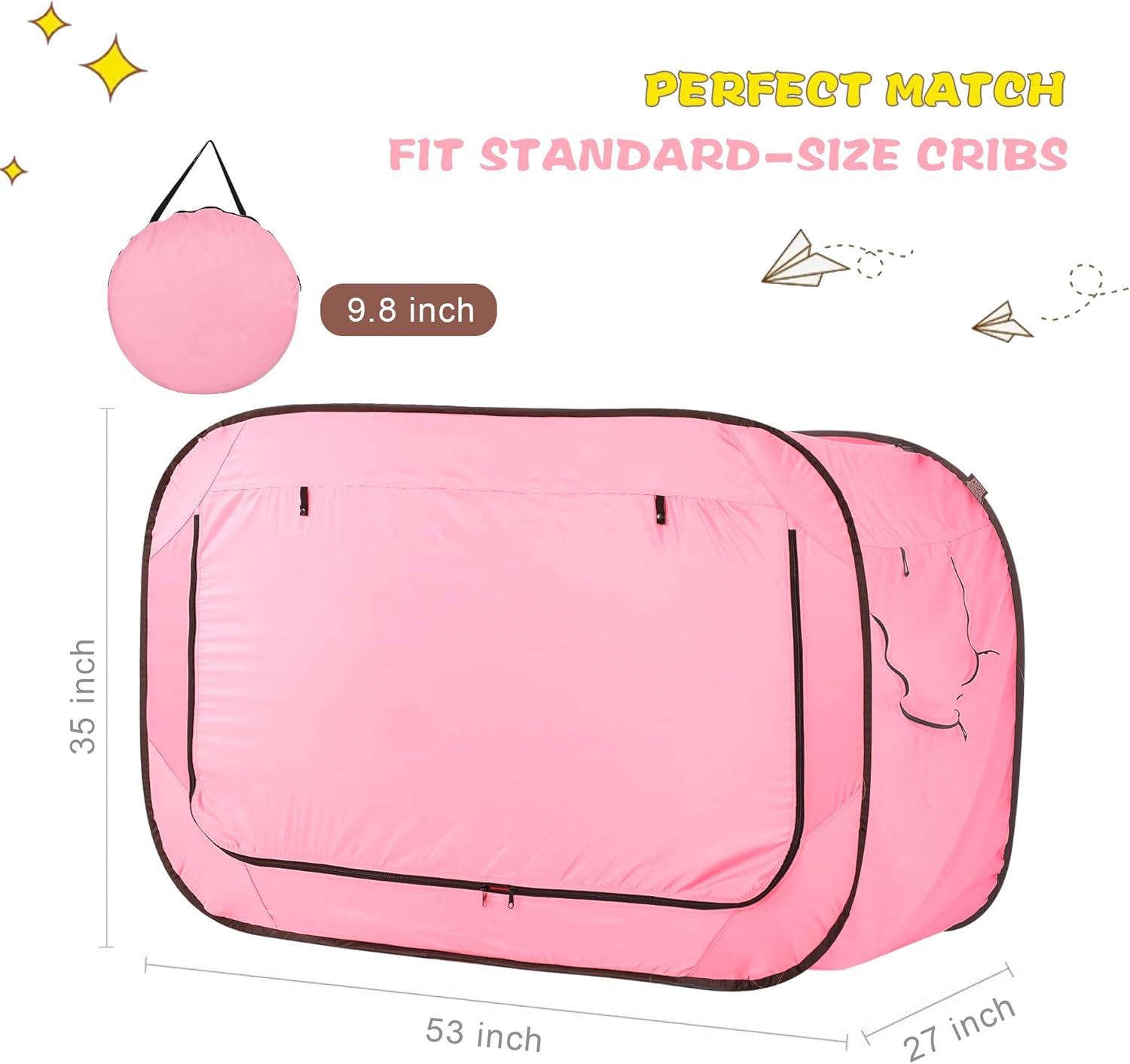 Poray Pop Up Baby Bed Tent Privacy Tent for Toddler Sleeping with 2 Zipper Doors,Breathable Mesh Windows and Portable Carry Bag(Pink)