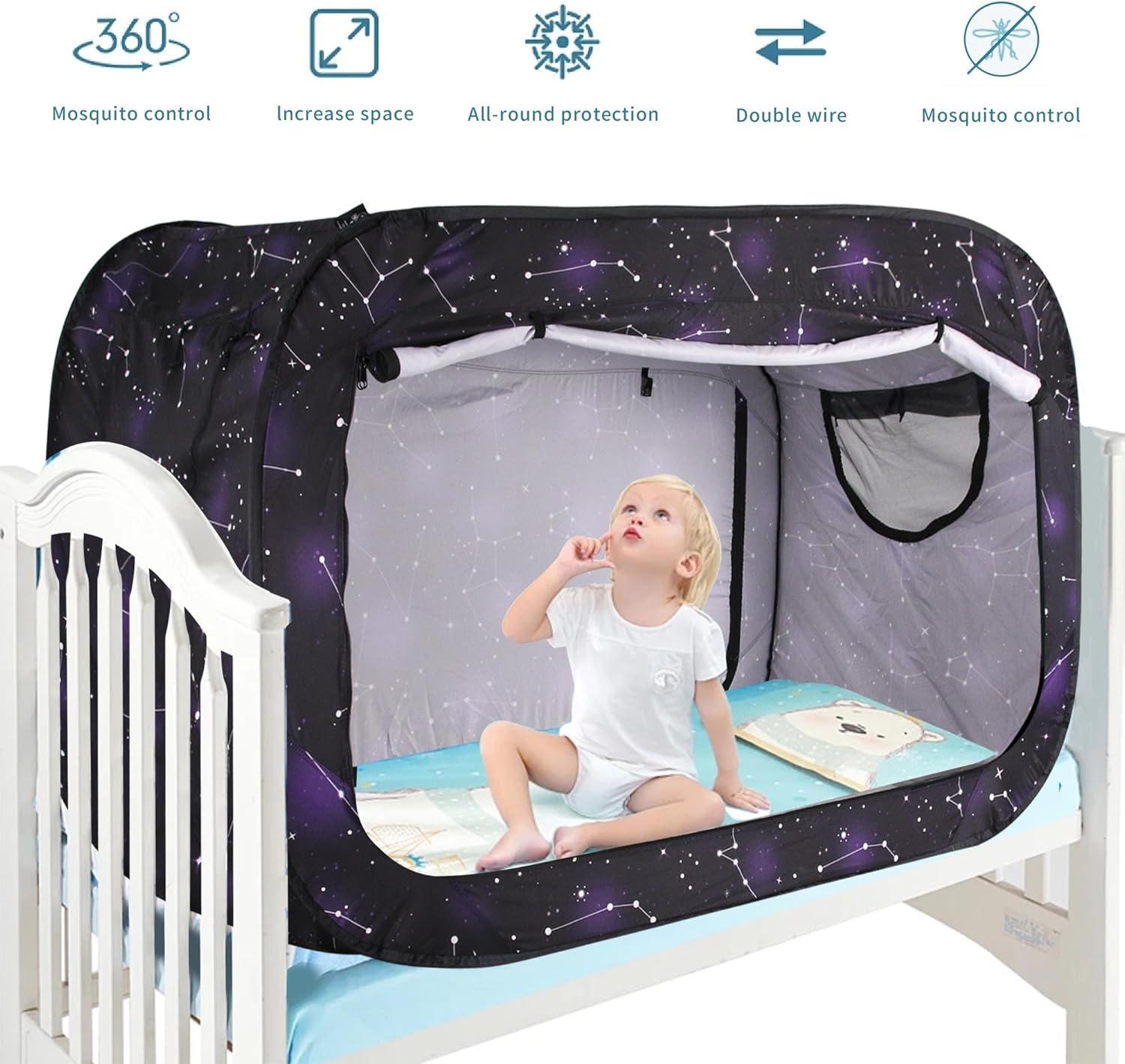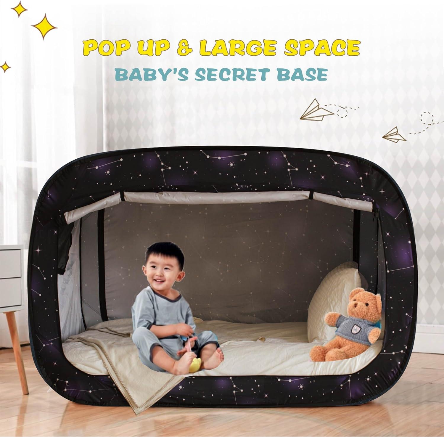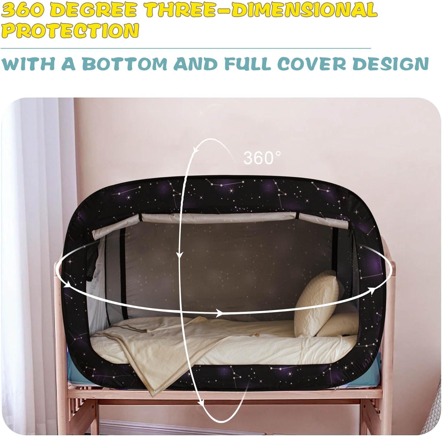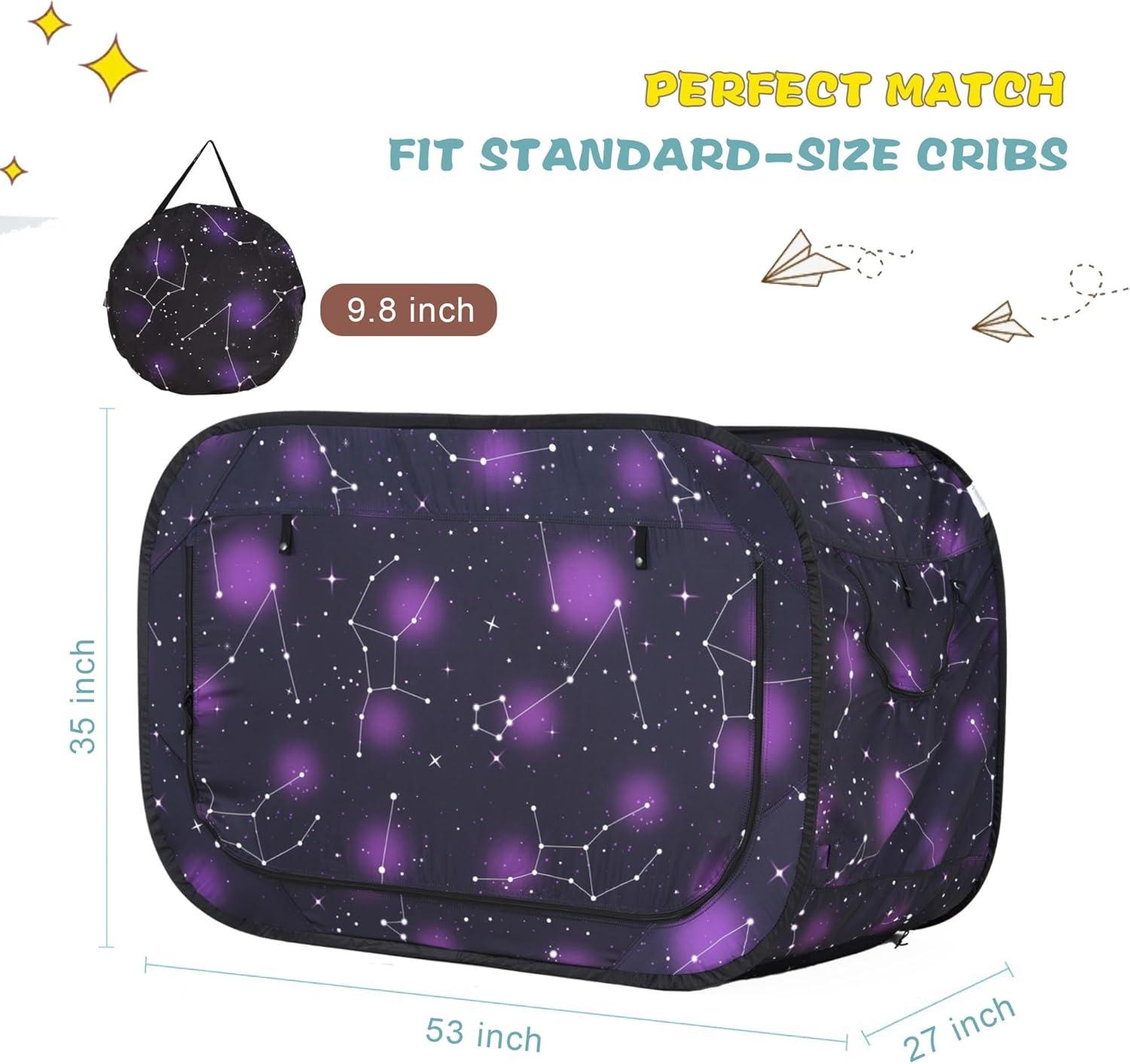 Poray Pop Up Baby Bed Tent Privacy Tent for Toddler Sleeping with 2 Zipper Doors,Breathable Mesh Windows and Portable Carry Bag(Starry Constellation)