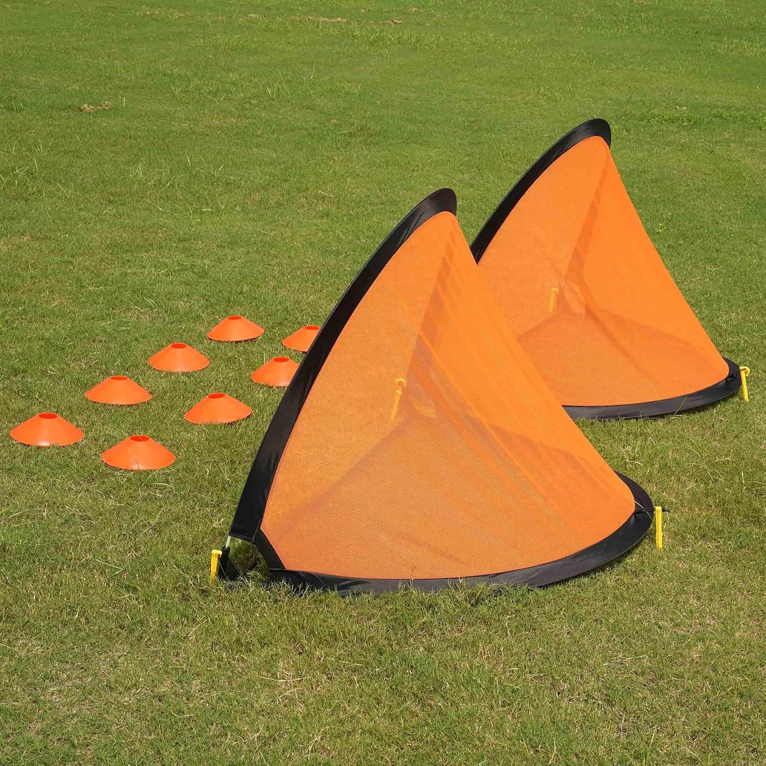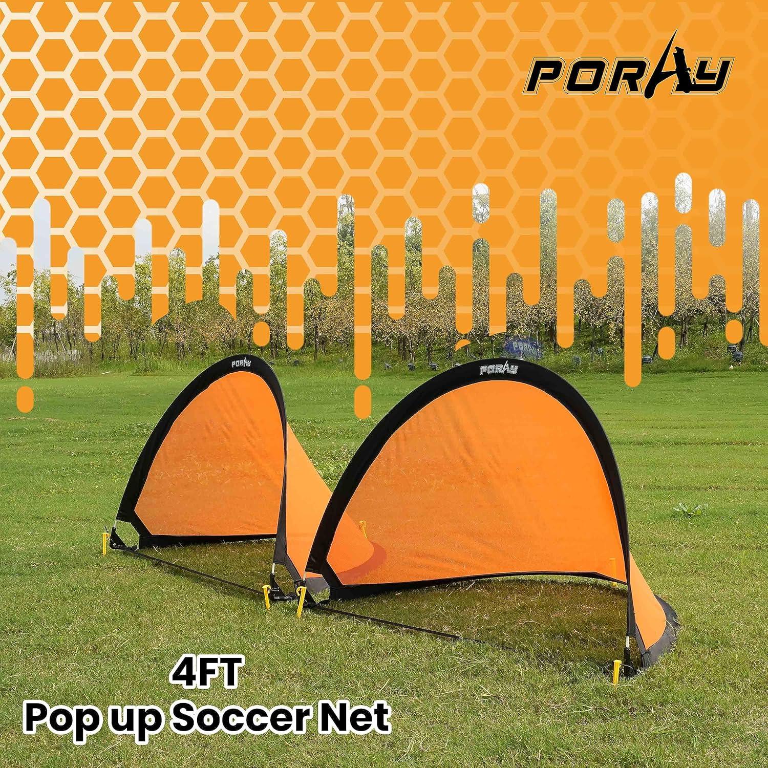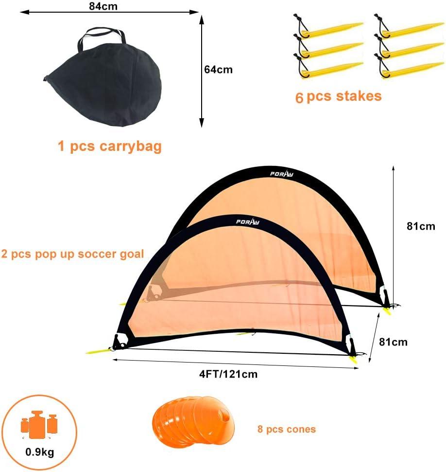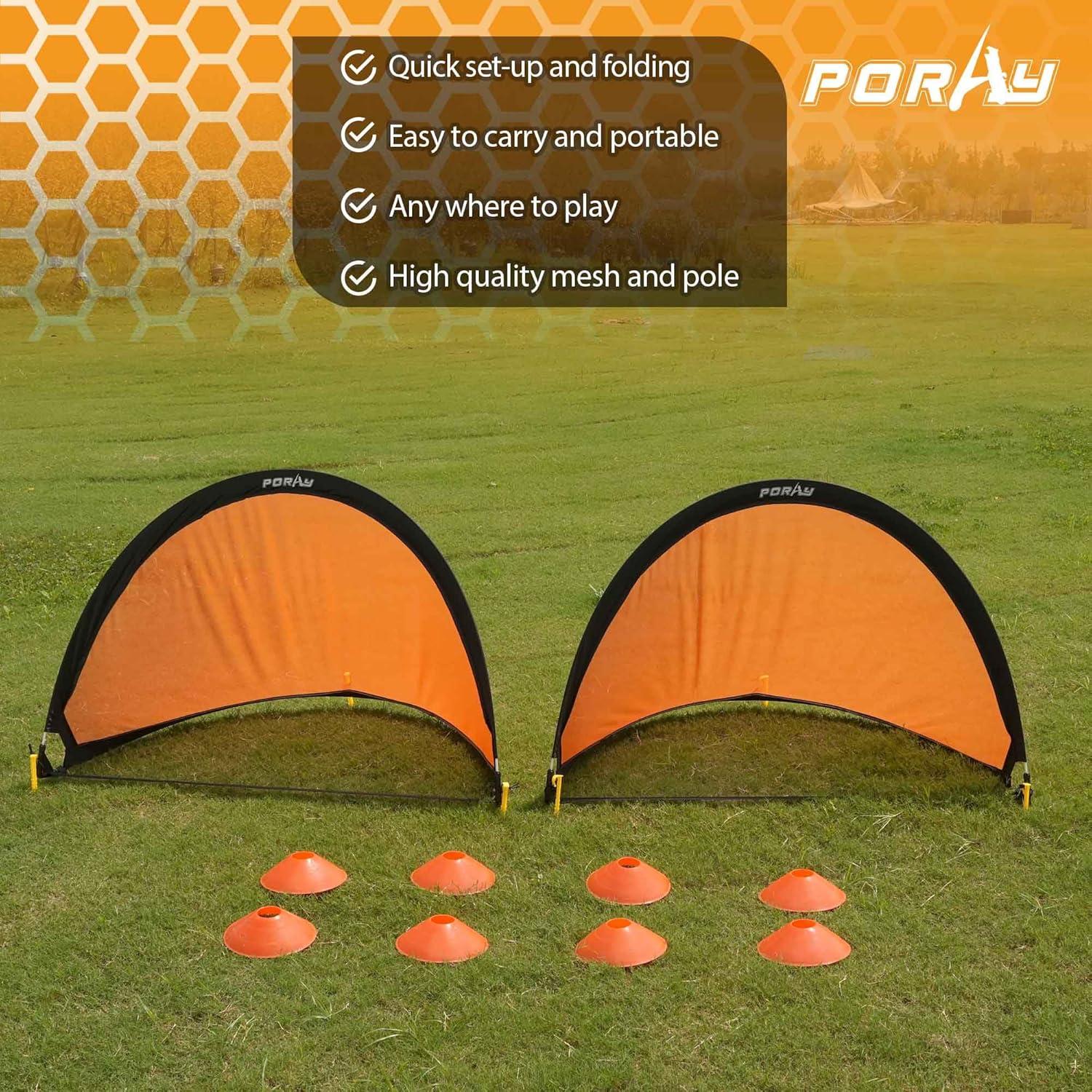 Poray Soccer Goal for Kid Easy-up Set of Two Portable Soccer Net 210D Oxford with 8 Field Marker Cones Extra Stakes Fun for Backyard and Soccer Training(Orange)