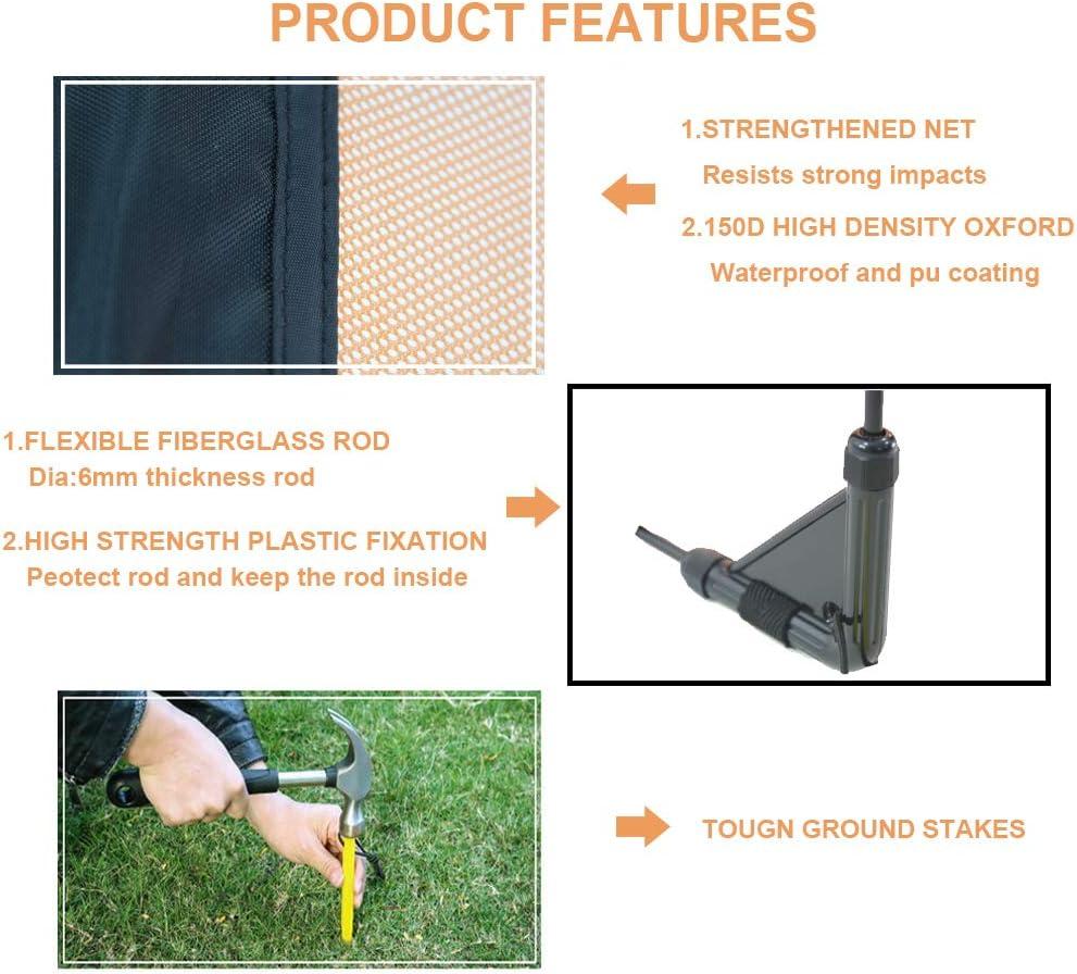 ✔️DURABLE MATERIALS-We use 210D Oxford pu800mm coating and waterproof and the dense mesh is 120g/m², Elasticity is very good, high intensity for soccer goal ,and the frame is dia:6mm fiberglass rod High-strength, can fold without breaking,And the water-repellent structure will keep soccer goal dry and relaxed when it drizzles, but please avoid using it in heavy rain