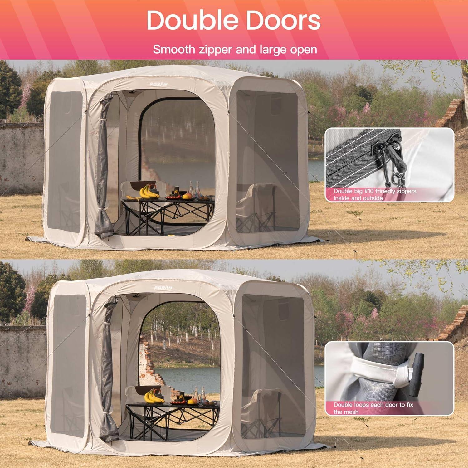 imagePorayhut Pop up Screen House Tent Sun Shelter with Breathable Mesh DoorsPortable Camping Tent with Detachable Waterproof Floor10x10FT Screen Canopy Outdoor for Family Friends PartyBeige