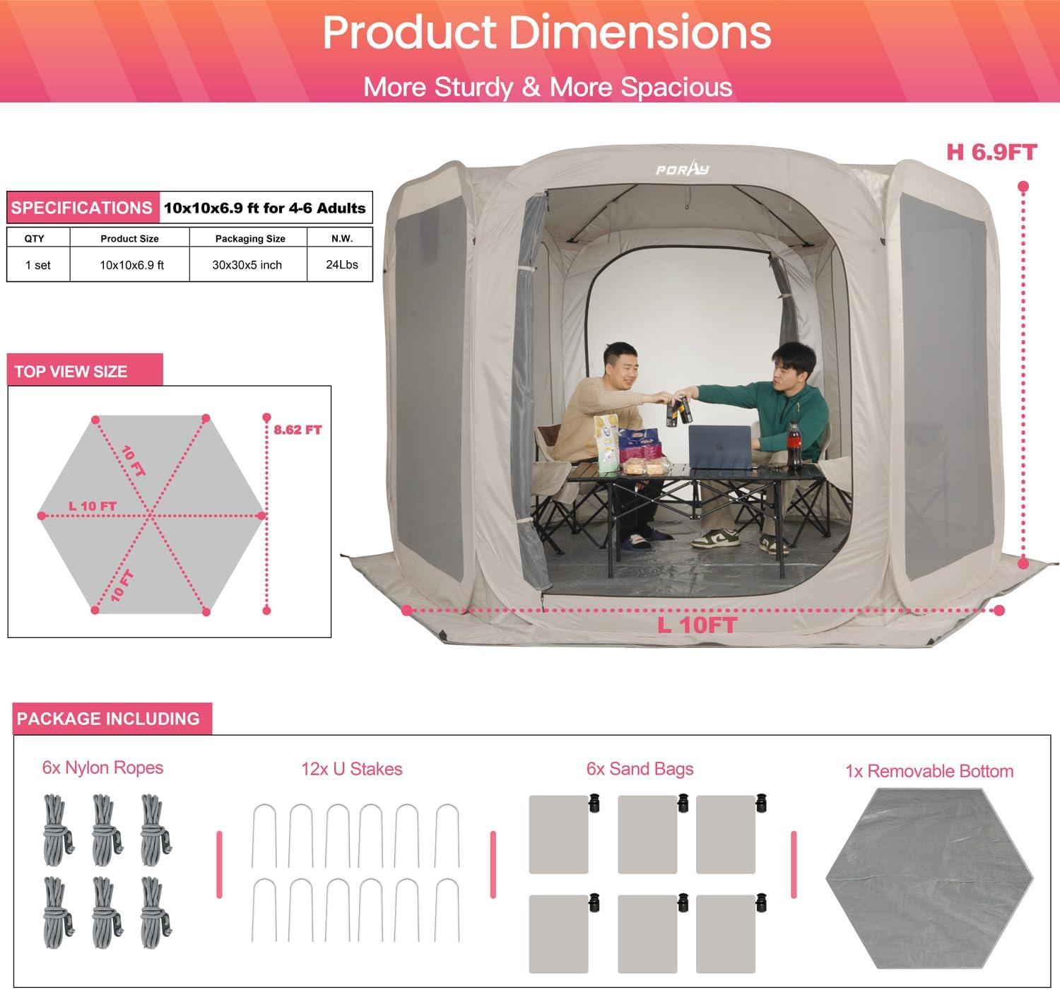 Versatile Use – Perfect for camping, family gatherings, backyard naps, and more. This portable screen house enhances your outdoor leisure time, offering a comfortable space to relax and enjoy nature. Great for holidays and everyday outdoor activities