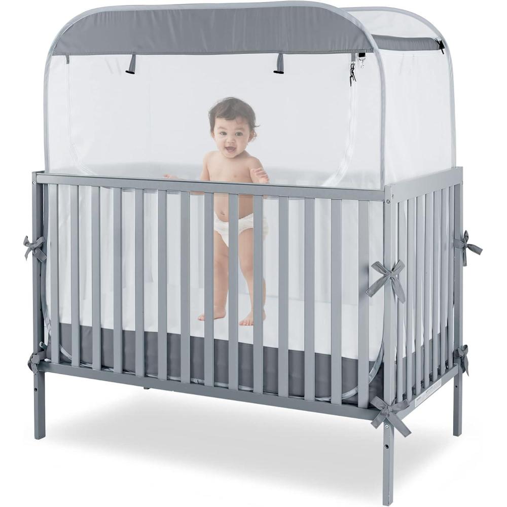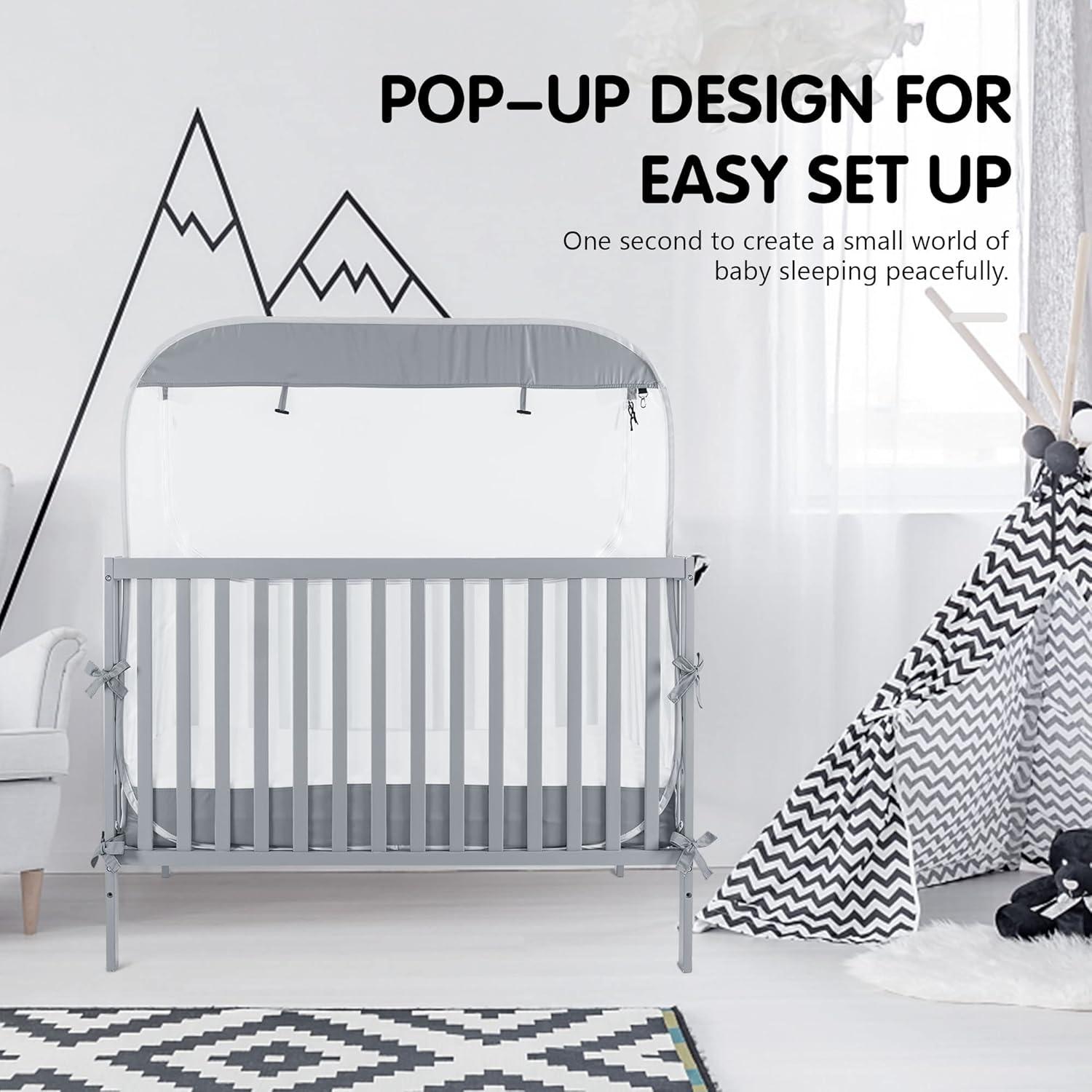 imagePorayhut Portable Baby Crib Net Safety Mesh TentPop up Infant Mosquito Net See Through Canopy Netting Cover for BabyampampToddler to Keep Baby from Climbing OutSpace Gray