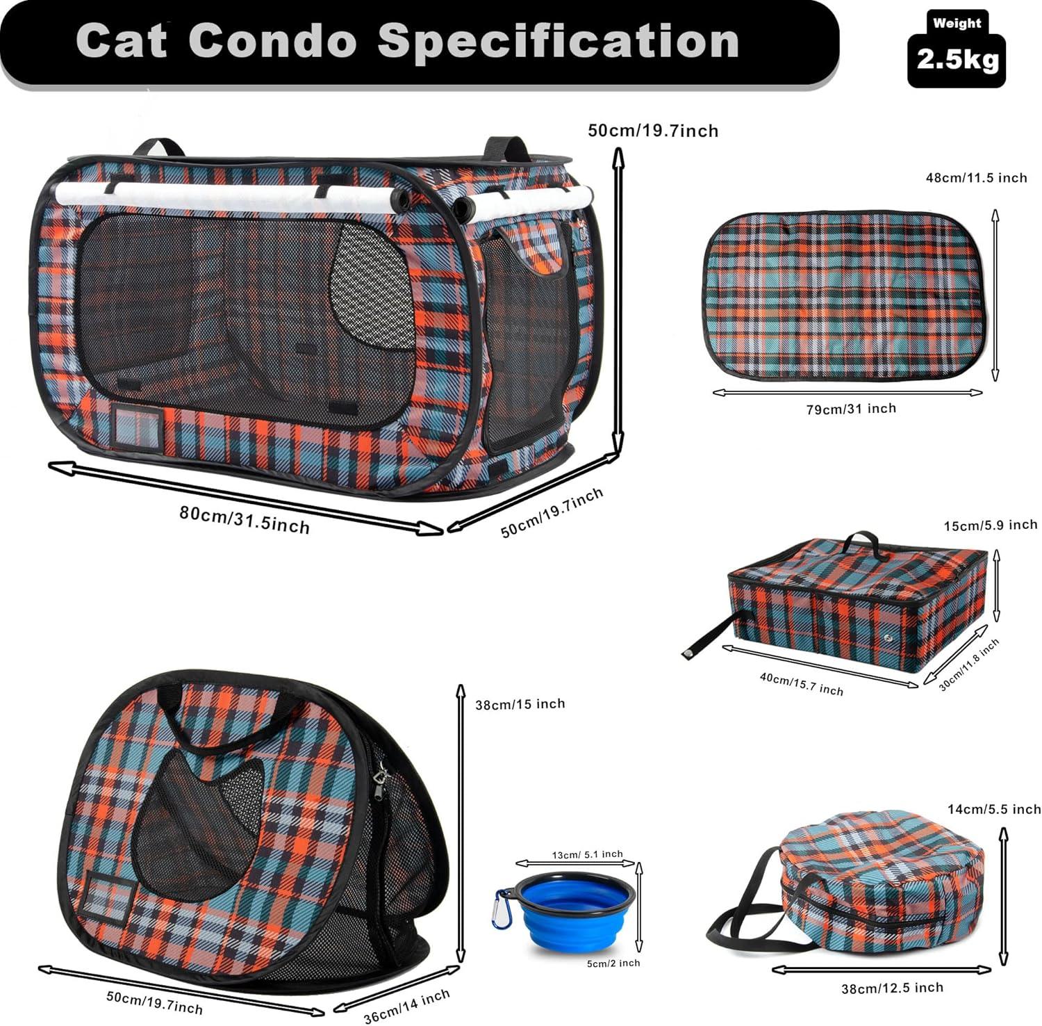 REASONABLE SIZE – The expansion size of the cat condo is 31.5 * 19.7 * 19.7 inches; The weight is only 2.5KG, and can be folded to 12.5 * 12.5 * 5.5 inches of travel size, which provides your pet with the maximum space for movement while solving the problem of storage size as much as possible.