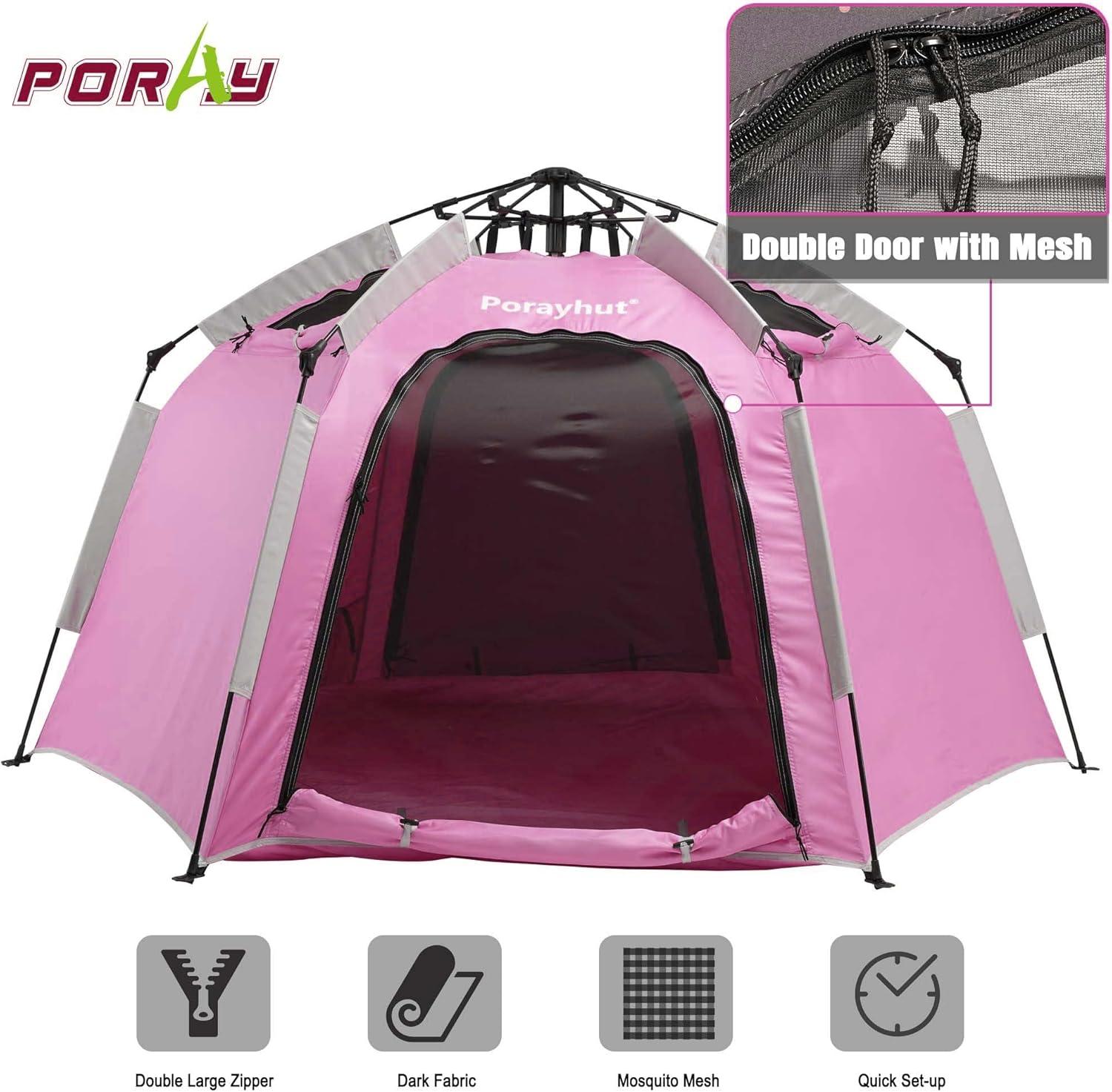 imagePortable Hexagon Kids Play Tent with LED Strip Lights Indoor Children Play House Easy Setup Space Large Dream Tent for Night 45 Person ampamp Birthday GiftsPink