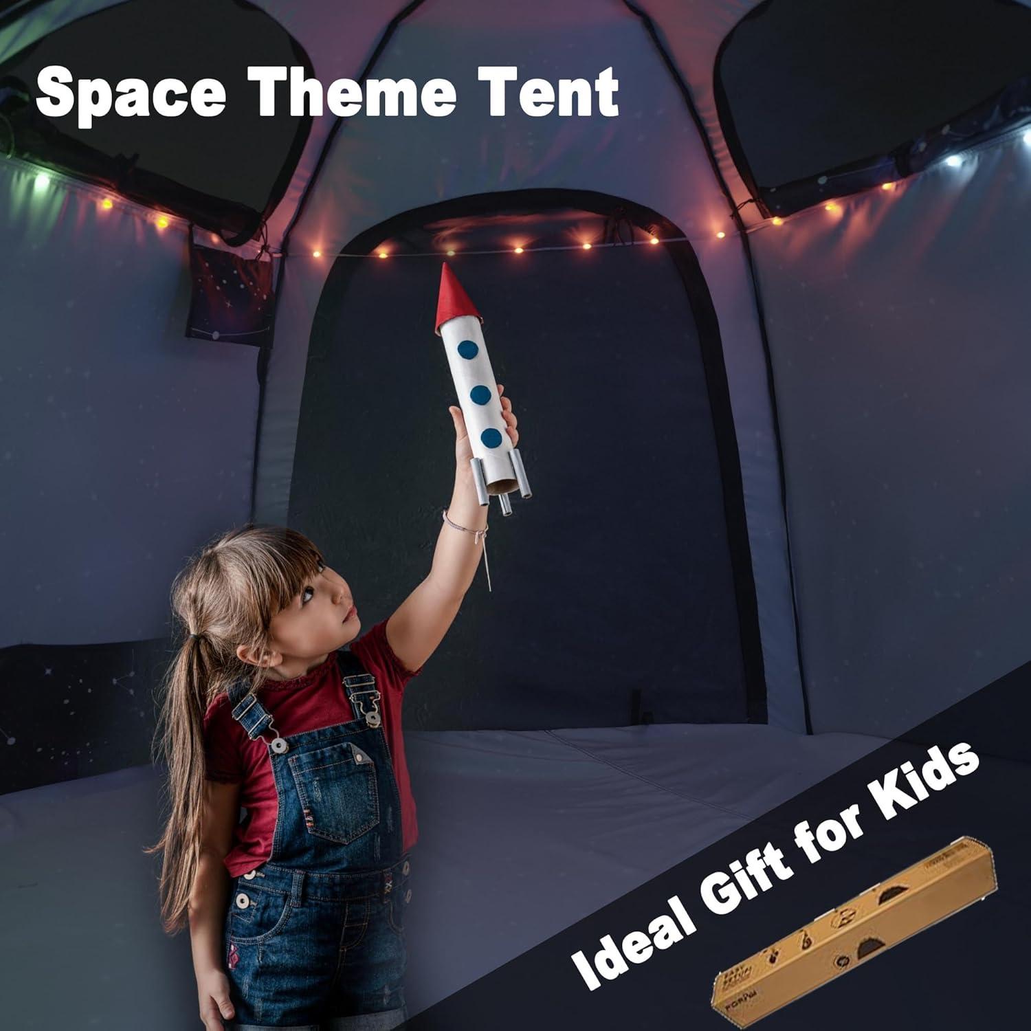 imagePortable Hexagon Kids Play Tent with LED Strip Lights Indoor Children Play House Easy Setup Space Large Dream Tent for Night 45 Person ampamp Birthday GiftsStarry Constellation