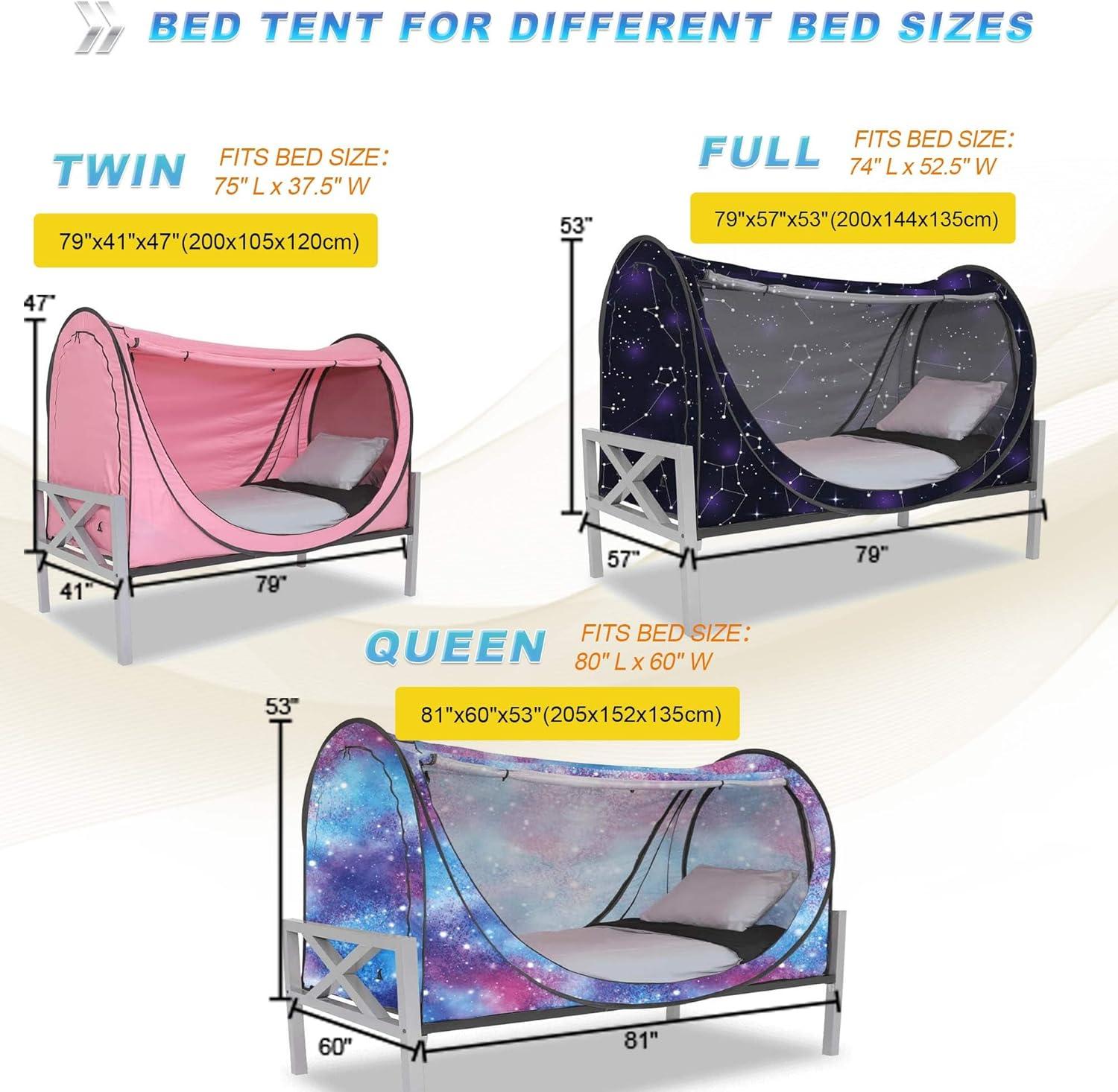 Stable & Durable – The privacy tent can pop up in 3 seconds. After simple assembly and placement in a suitable mattress,the bed tent structure is sturdy and stable, not easy to collapse. The double zipper design makes the zipper door open more smoothly