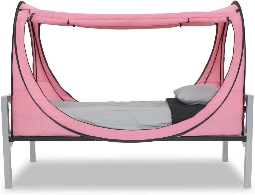 Privacy Pop up Eclipse Bed Tent Bed Drapes (Unicorn Galaxy, Twin)(Pink)