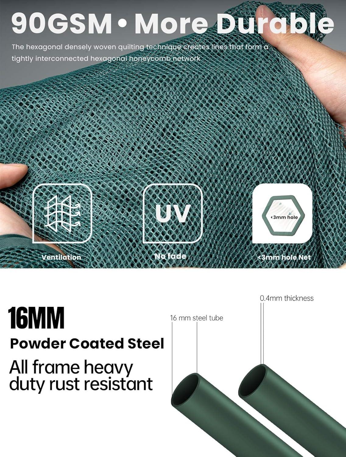 Durble Mesh and Frame- Our Plant mesh cover use dia<3mm netting gram weight is 96g/m²,16mm strong round steel tube frame,keep your plant safe prevents any bird and small animals